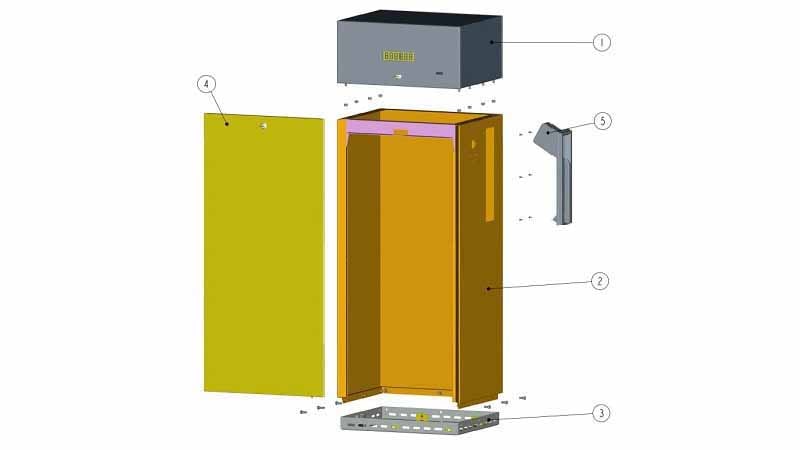 Крышки шкафа завешены на петлях и после открытия замков позволяют отклонение вверх, что обеспечит удобный доступ во внутреннее пространство шкафа.